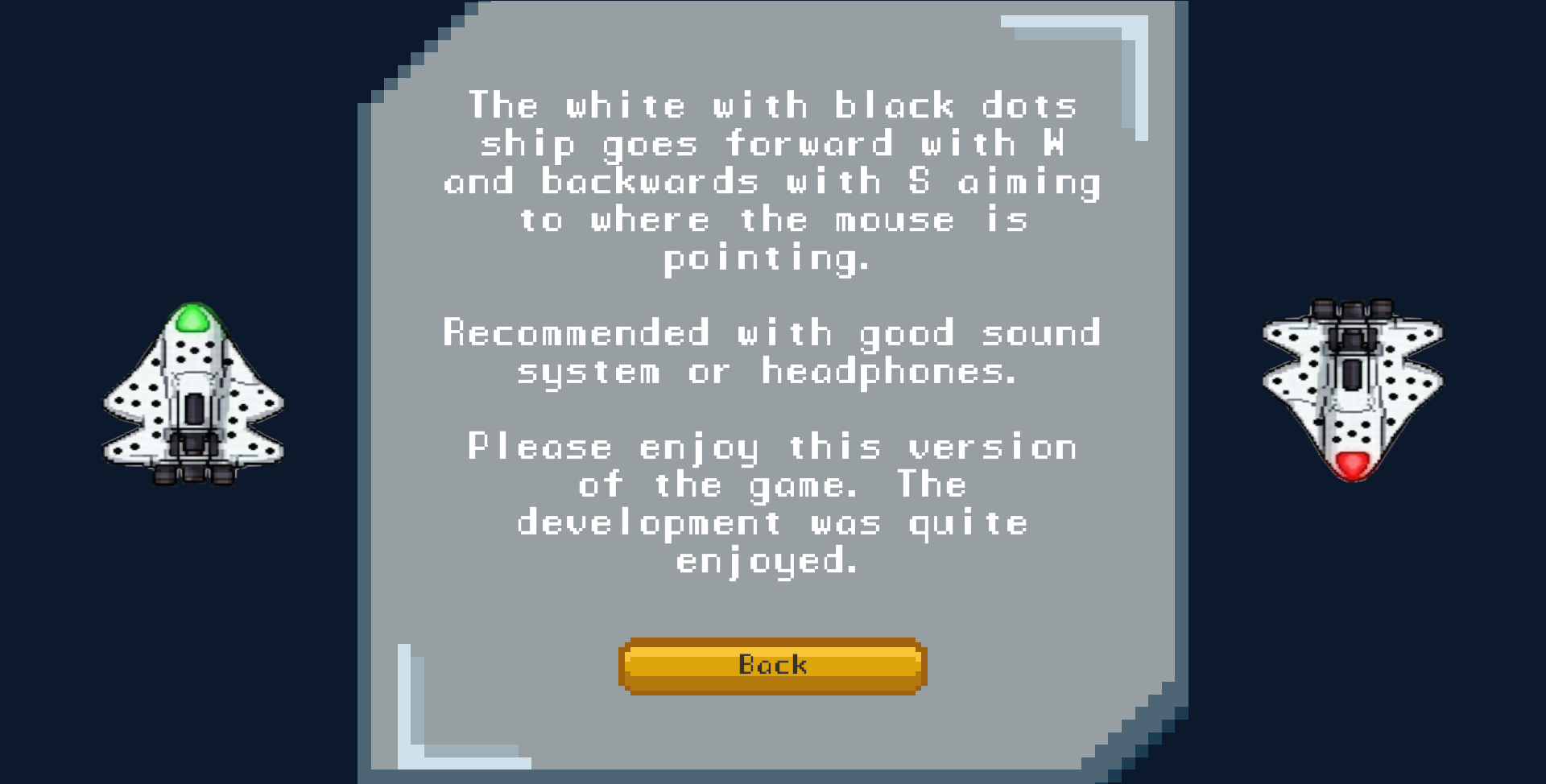 - Changed the controls of the ship, still pointing to the mouse but going forward or backward with momentum